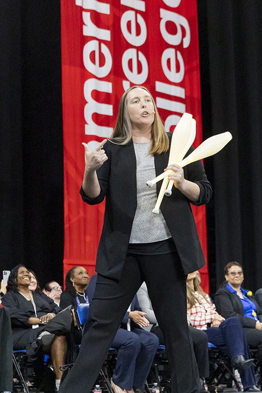 Major takeaway – throughout the rest of our time together, we referred to the juggling act of our roles. The physical engagement really helped us give voice to our internal feelings. It is hard to find leadership-focused entertainment that engages professionally and social-emotionally. Jen Mott knows the admin role and can speak to the lights and shadows on the role – without speaking down listeners or taking cheap shots at those we serve.