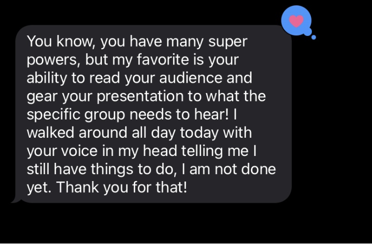 Every year our public school district holds an all staff professional development day. Dr. Jen Mott has joined us for the past two years to speak on the teachers’ potential to bring their best selves to inspire and motivate their students. Here are some of the comments left by our teachers regarding Dr. Mott’s presentation on Feb. 16, 2023: